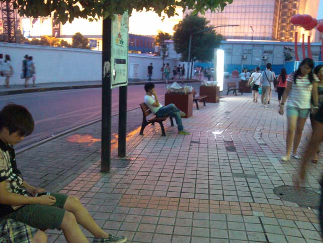 長沙市黃興路步行街休閑椅花箱安..
